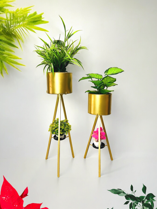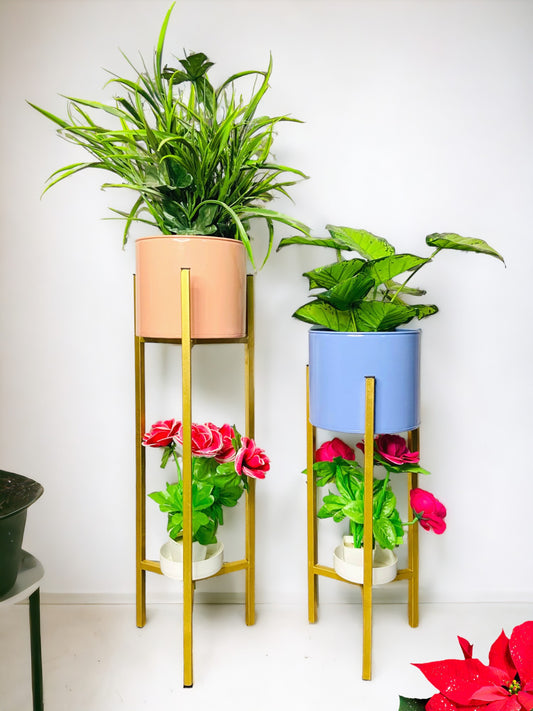 Modern Metal Floor Flower Stands Stand with Planter Set of-2