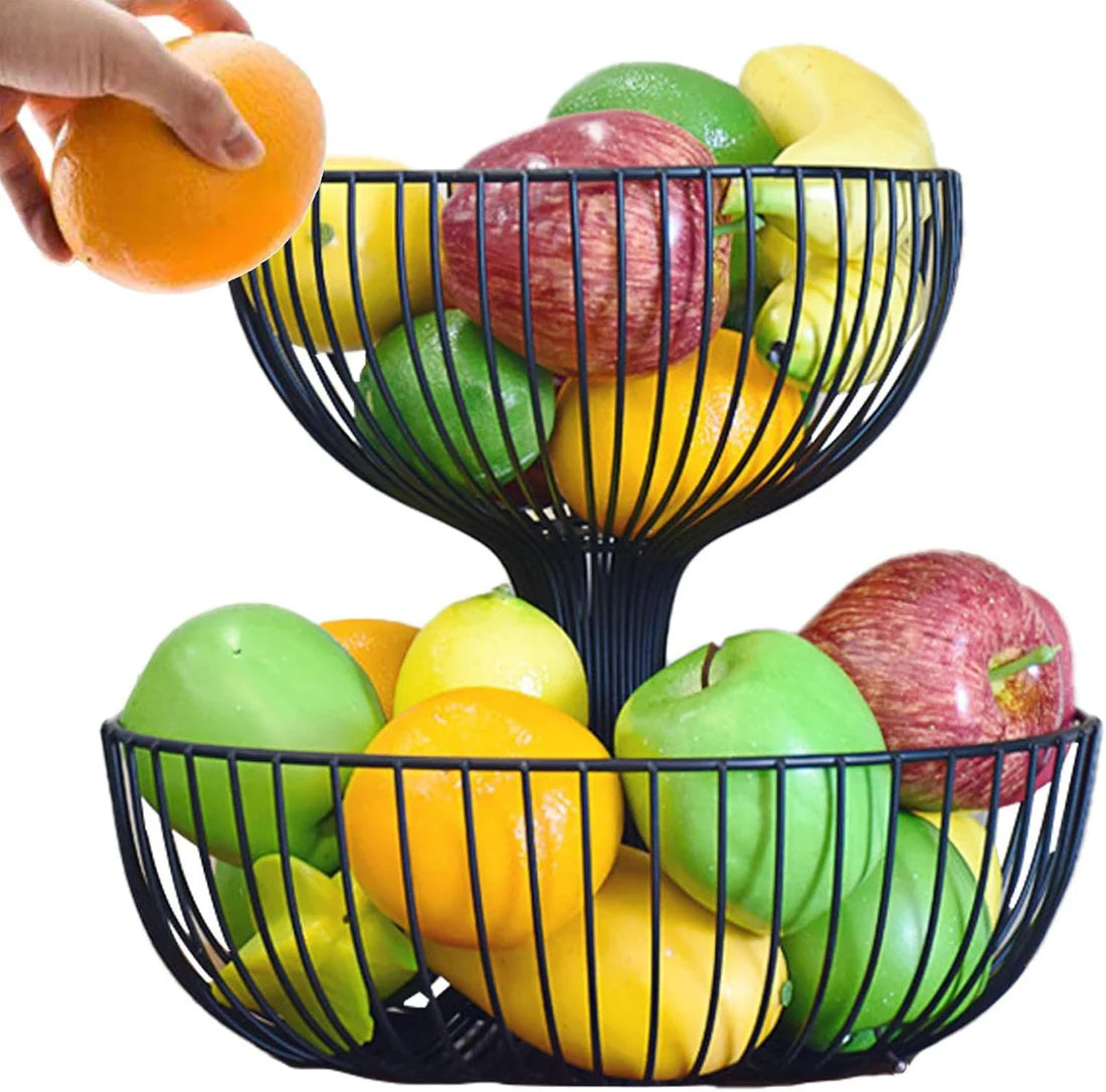 2 Tier Fruit Bowl | Countertop Fruit Storage Baskets - Double Layer Fruit & Vegetables Baskets for Storage