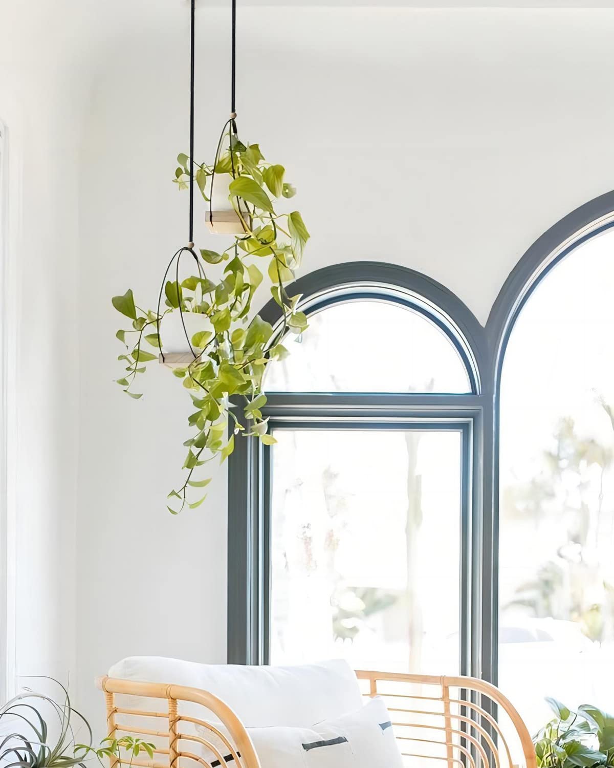 This 2-pack black macrame plant hanger with wooden base adds a stylish boho vibe. Ideal for indoor walls, windows, or room décor. Plants not included.