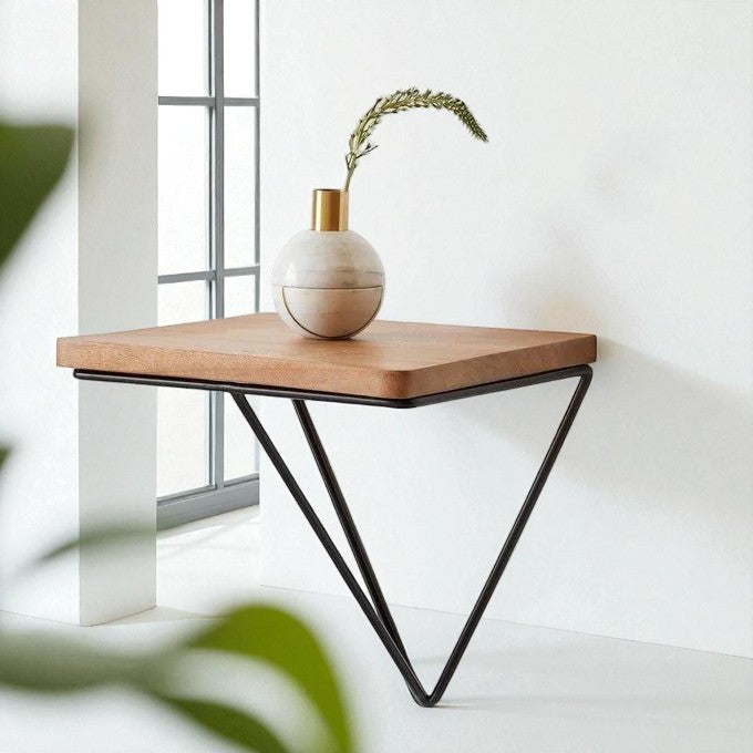 Bring a modern edge to your interiors with the Anasay GeoCorner Wall Shelf. Crafted with a sleek triangular metal frame and wooden base, it fits perfectly into any corner — making it ideal for showcasing plants, vases, or decorative accents. A smart blend of function and style, designed to elevate your space effortlessly.