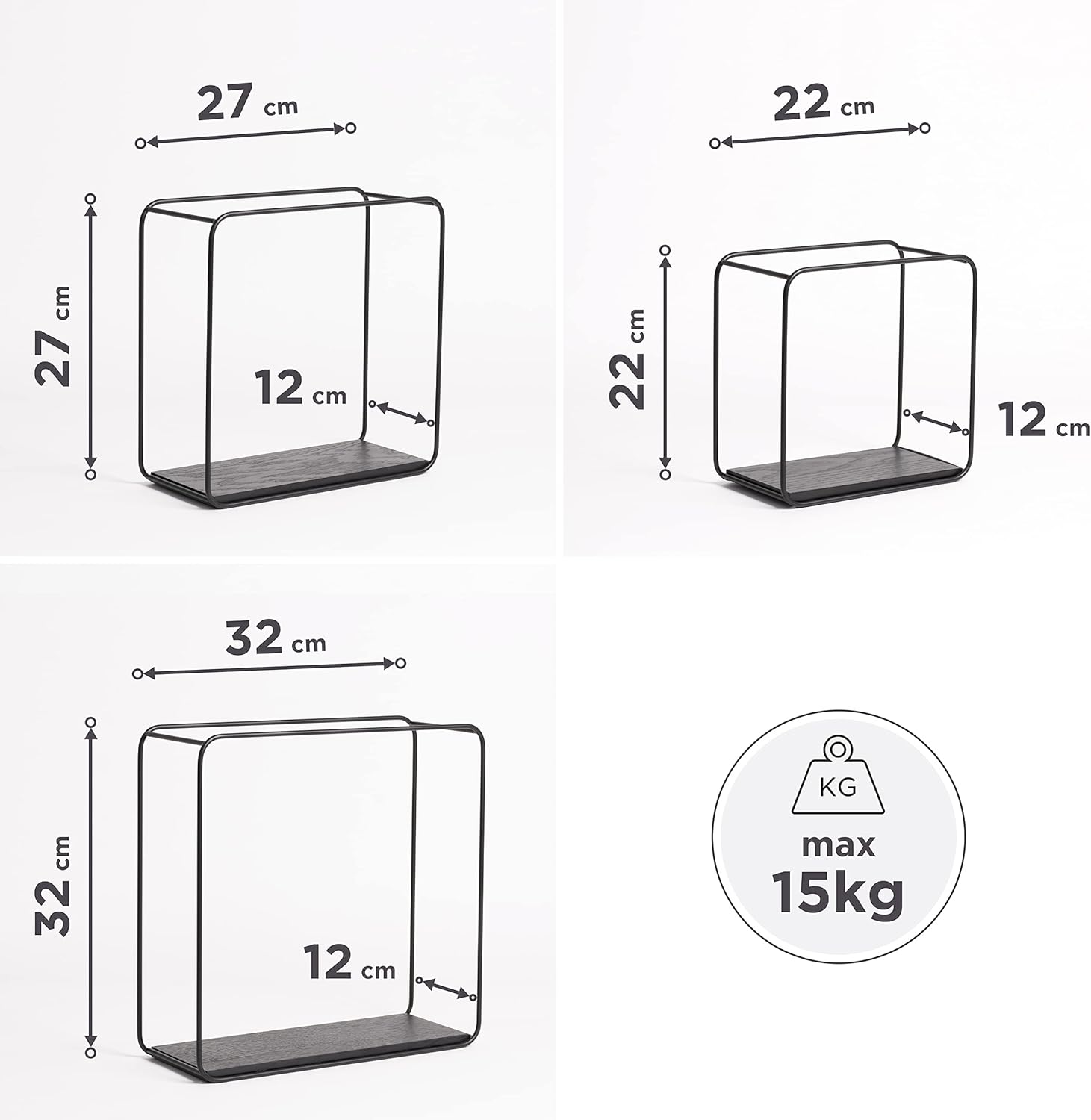 Anasay Wall Shelf Set, 3-Piece Hanging Shelf Made of Metal and Real Wood Veneer, Wall Decoration and Shelf for Bathroom,