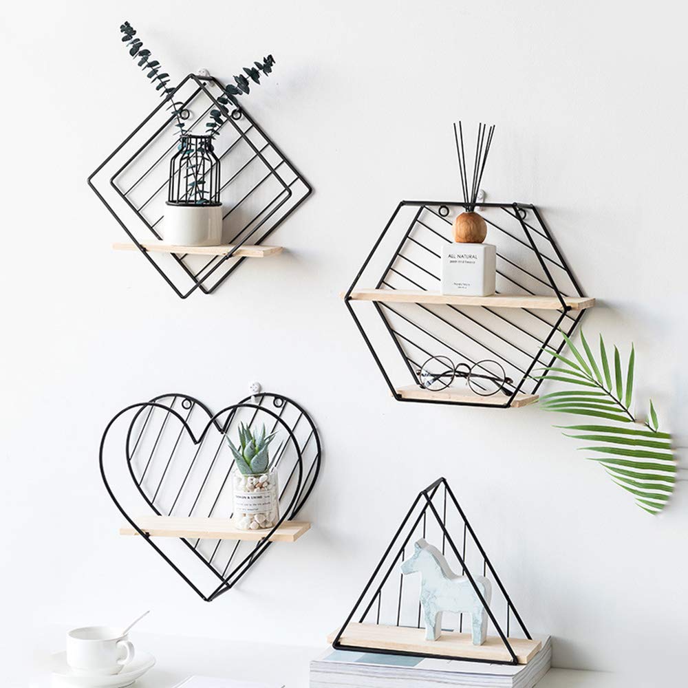 Anasay Floating Shelves Metal Wire Heart Shape Design Wall Mounted Display Shelves Wall Decor Storage Frame Display Shelving