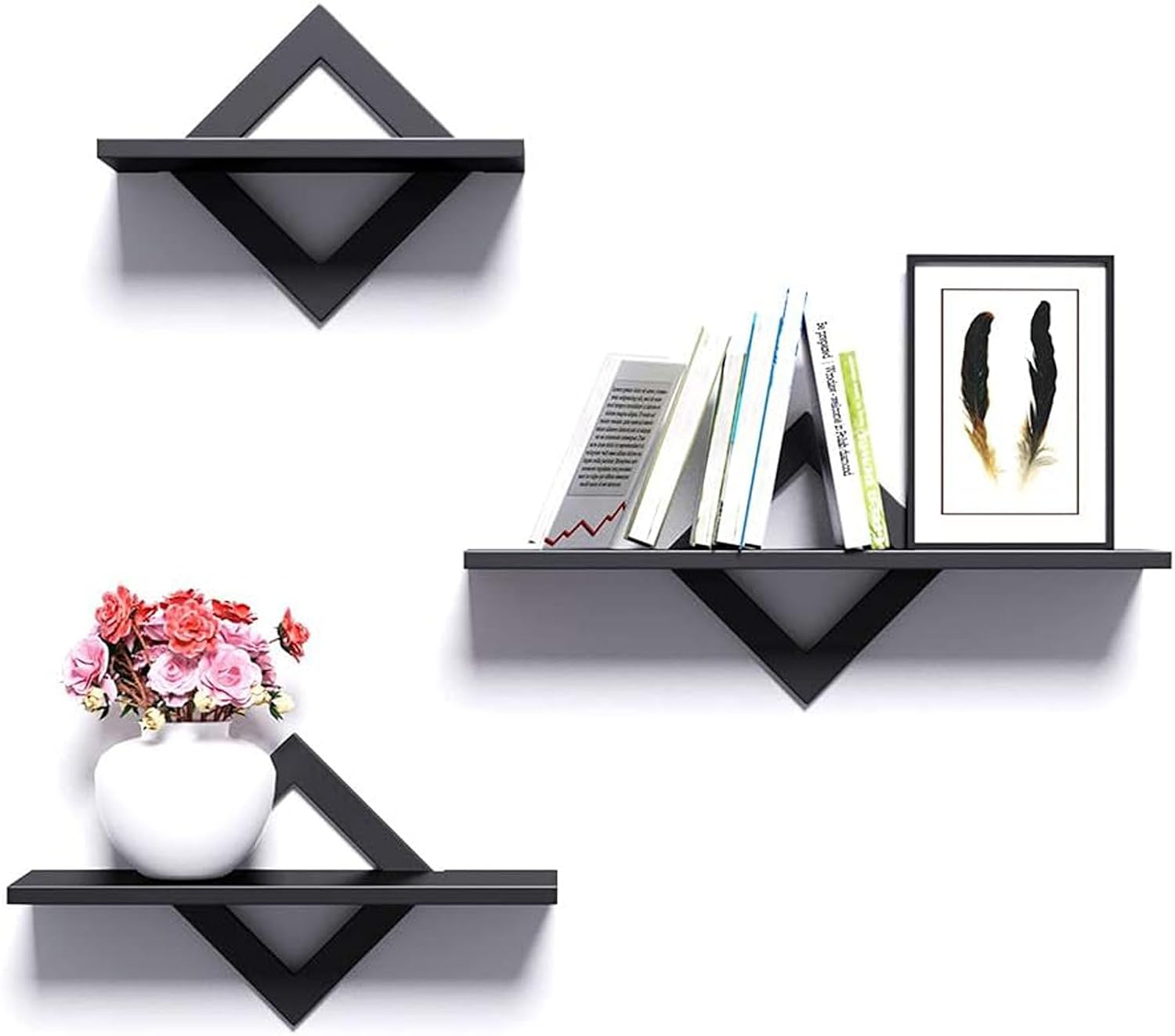 Anasay Wall Display Wood Wall Rack Shelf for Storage Display Room Decoration (Black) Set Of 3