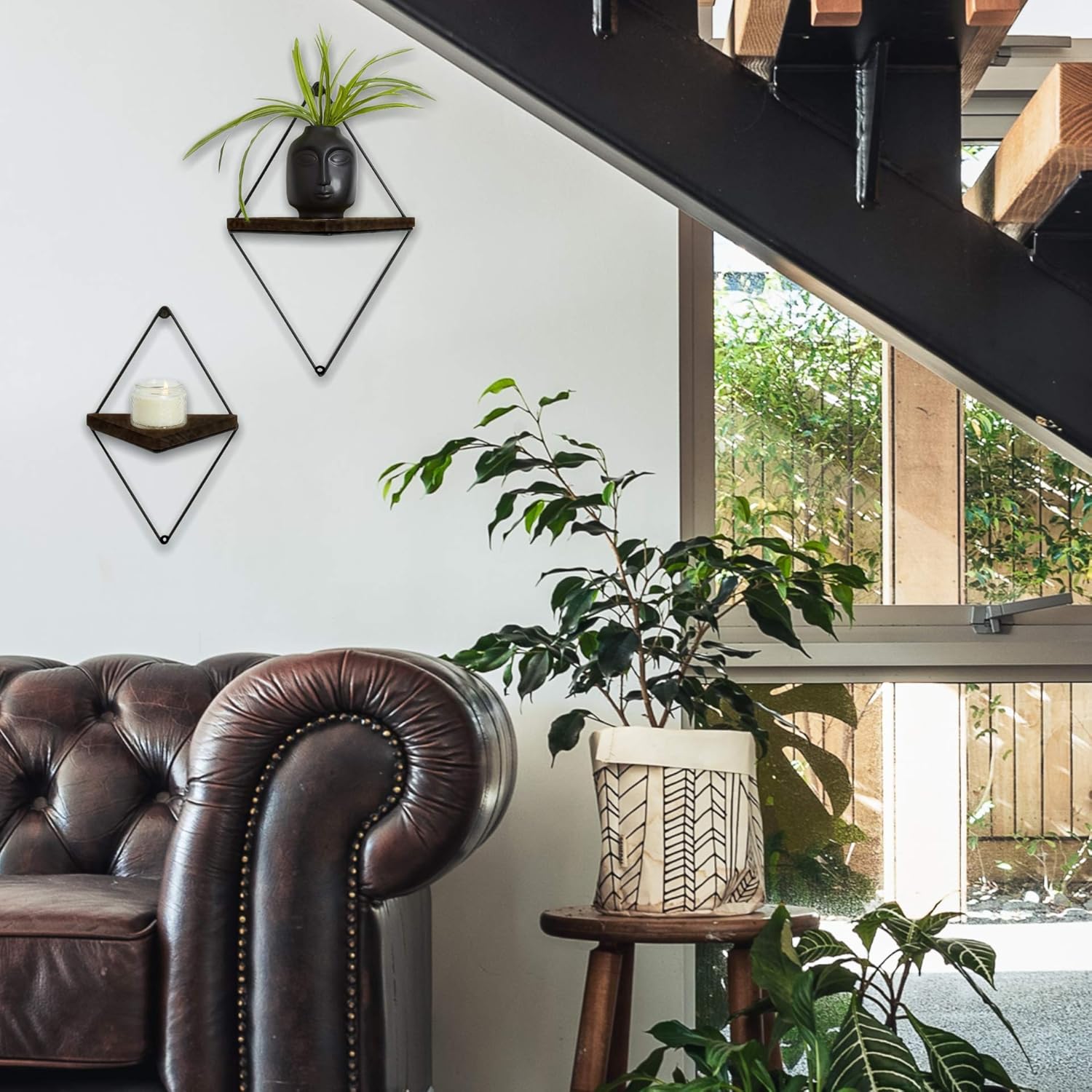 Anasay Floating Rustic Wood Triangle Shelves- Set of 2