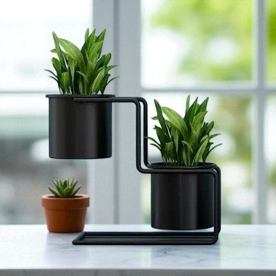 Geometric hexagon metal frame with terracotta pot — a sleek wall planter that blends modern style with earthy charm.