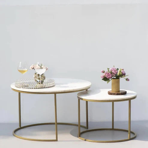 Add timeless elegance to your space with the Anasay Round Coffee Table Set of 2, crafted with white marble-finish tops and supported by a sleek black iron stand base. This set brings a sophisticated contrast and fits beautifully in both modern and classic interiors.
