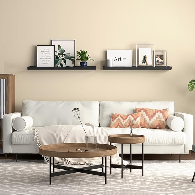 Anasay Long Floating Shelves Wall Mounted, 2 Set Modern Wall Shelf for Bedroom, Nursery Book Shelf Picture Ledge Shelf for Wall Decor Living Room Bathroom Kitchen - Black
