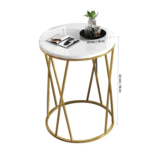 Anasay Designer Golden Marble-Finish Wooden Top Round Side Table