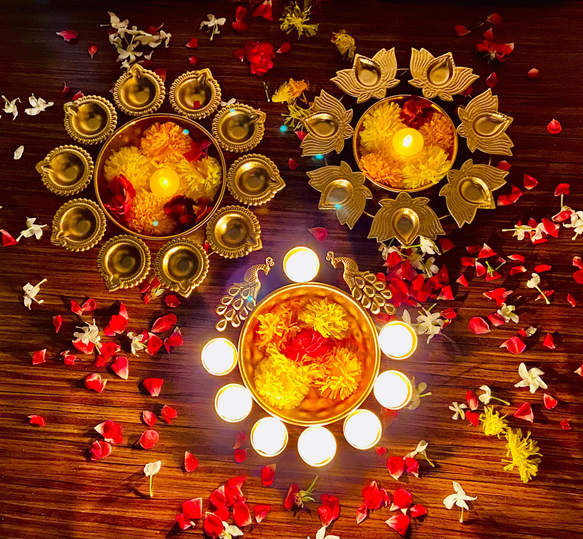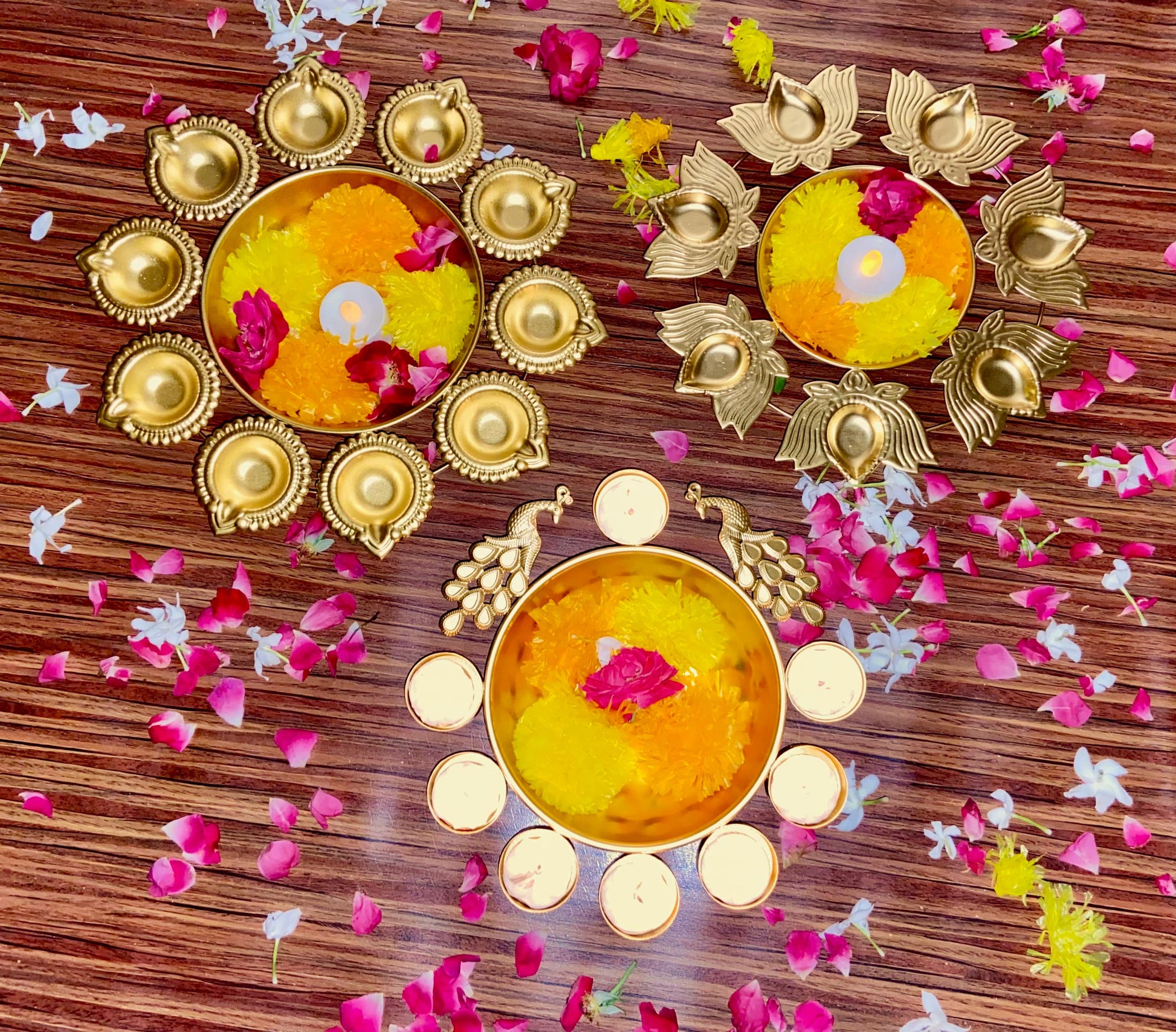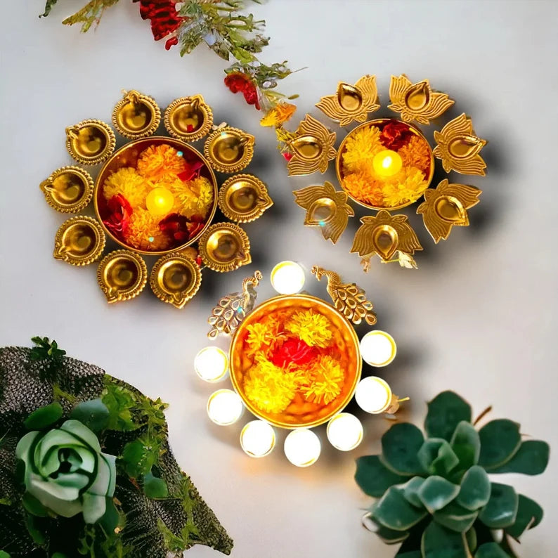 Copper Metal Diya Urli Home,Office Table Decor Diwali Decoration Items for Home Set of 3 (Size 10,10 and 12 inches)