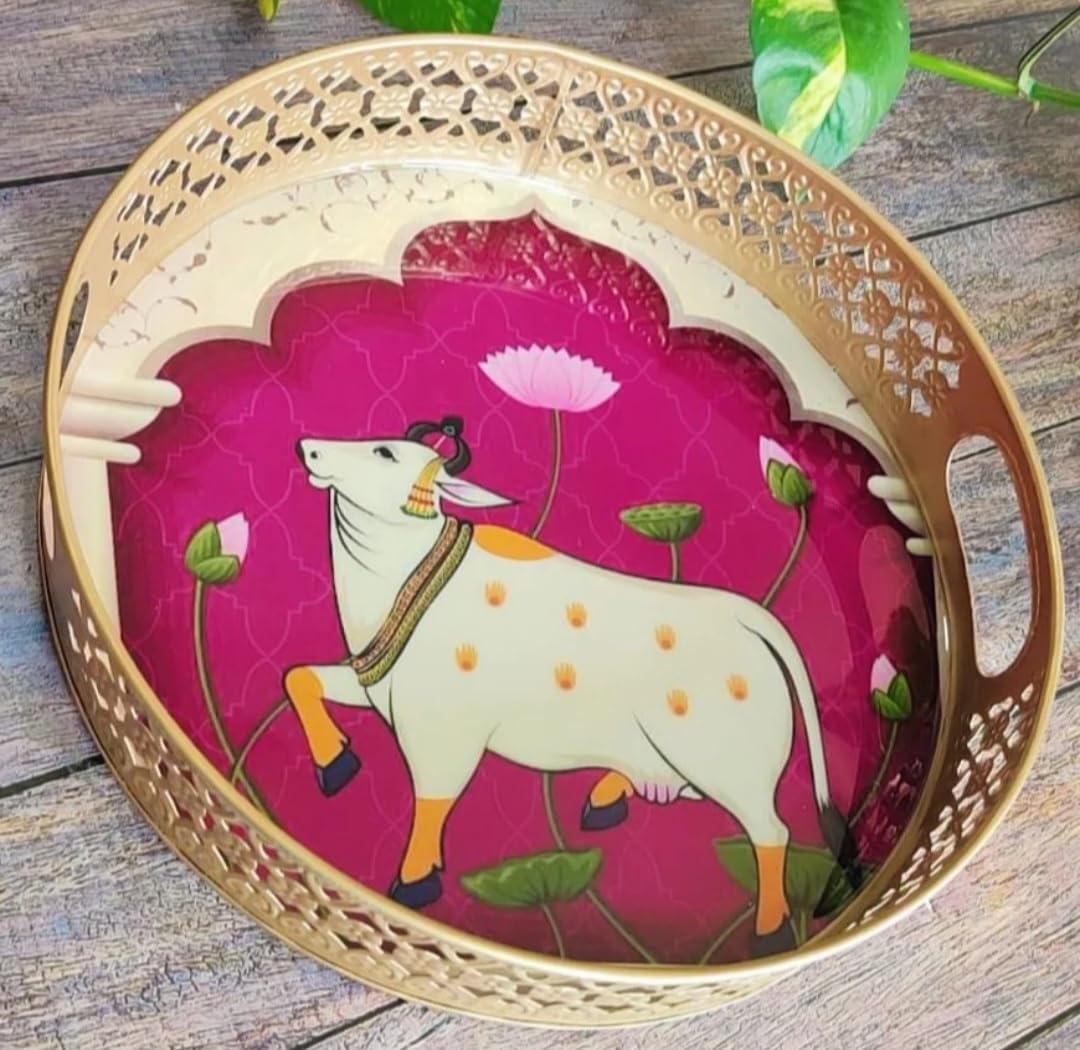 - Use: Cow Painting Pichwai Tray are used on festivals,Weddings and Special Occations decorations and Gifting too