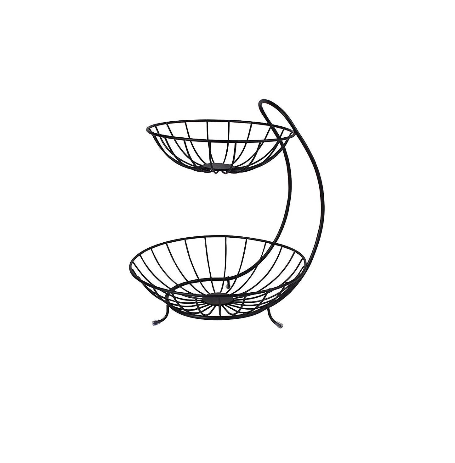 Make in Modern Steel 2-Tier Fruit & Vegetable Storage Basket for Dining Table, Black