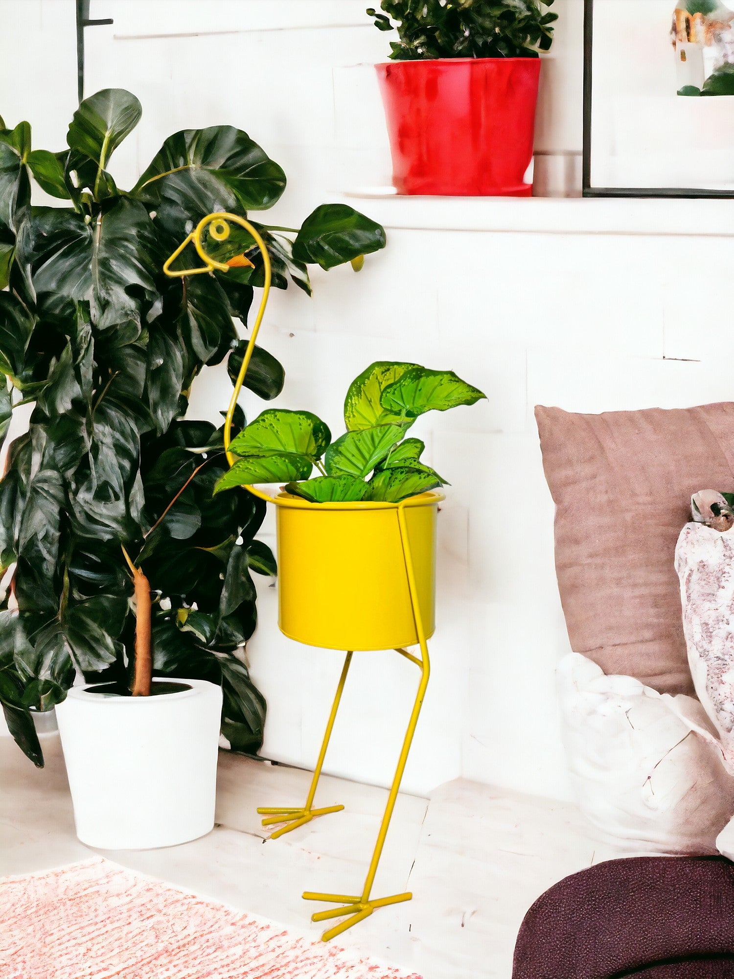 Modern Metal peacock Flower Stands Planter Stand with Planter Yellow Color