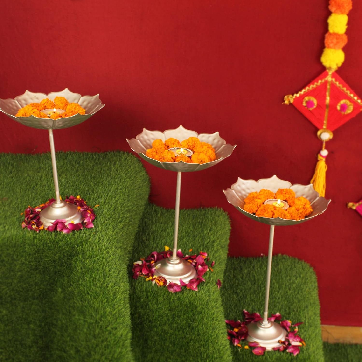 Pack of 3 Decorative Urli Bowl for Home Decor with Stands for Floating Flowers Home Decor