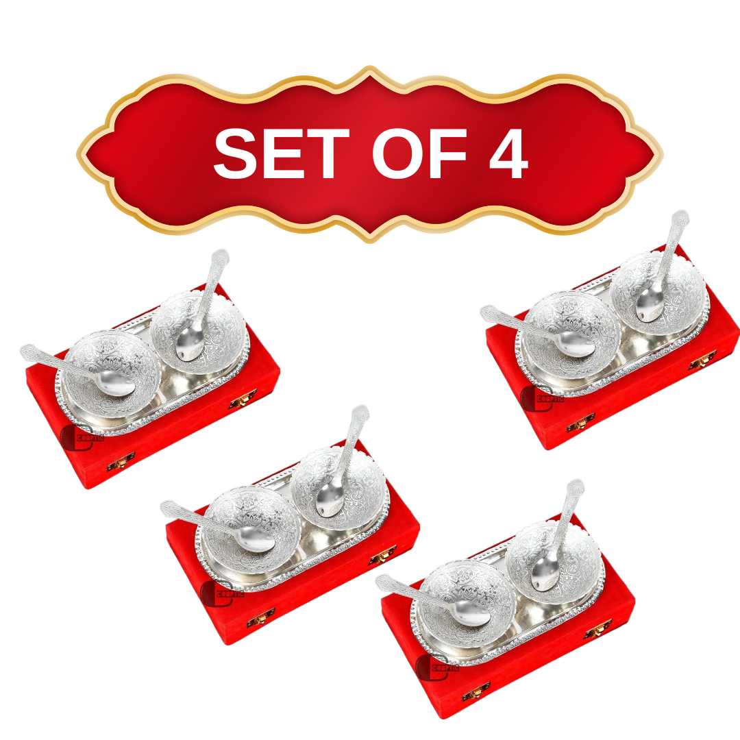 Premium Anasay Handcrafted German Silver Brass Round Bowl Set with Tray